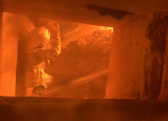 2022年4月9日,章丘项目#2炉燃尽段炉排出现脱落,导致炉排机械负荷受限,锅炉负荷骤降。经研讨后最终确定采用临时压火快速抢修的检修方案,待炉温降至450℃以下时,检修人员身着防烫工作服、系安全带,进入燃尽段炉排脱落处,拆卸损坏炉排并完成炉排片的安装。整个操作流程环环相扣,必须要在4小时内完成。方案确定后,设备部商朝俊克服高温、勇挑重担,顺利更换脱落的4块炉排及风室磨损严重的2个拖轮,维修时间比计划缩短半个小时,保障了项目的正常生产与运营。